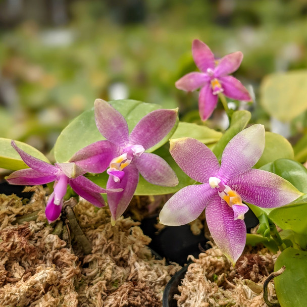 This is a hybrid from the subgenus 'Polychilos' which are known for waxy and shiny leaves with star-shaped, lightly fragrant flowers that bloom in the spring through fall months. Leave the flower spikes to grow so long as they are green, as they branch and flower for several years on end. These are seed grown hybrid plants and thus the flowers will vary in their color and saturation.