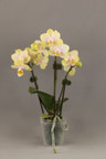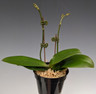 This compact clone blooms with a delightful array of yellow flowers decorated in fine pink spots. Already blooming at the 4" pot size, this orchid will continue to grow larger. With each new year of growth, you can expect taller, more floriferous spikes!