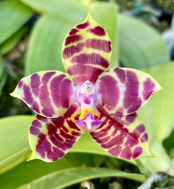 This is a remake of a primary hybrid but with a twist. Here we used a tetraploid amboinensis as the pod parent and the gigantea as the pollen parent. The reason we did this was two fold, first to reduce the plant size with the tetraploid amboinensis genetics and secondly to improve flower shape. The photos are of the first two to flower and they do not dissapoint! These have a citrus like fragrance. The flower spikes can produce year after year so as long as they are green don't cut them back. They often take a rest from blooming during shorter winter daylight.