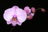 We crossed a light pink phalaenopsis with some spotting with one of our large tetraploid schilleriana selections with multibranched pink flowers. The flowers of these seedlings are pink with fine purple spots. Expect the flower spikes to branch when the plants are more mature. Some of the seedlings have inherited the nice mottled foliage from the schilleriana parent.