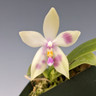 This primary cross, made in 2014, utilized the alba variety of Phal. violacea to create a semi-alba variety of this fantastic hybrid. The flower color of these seed-grown plants will vary dramatically, as shown by the two example flowers. Each plant will bloom as its own surprise!