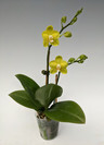 This is a fantastic color for a miniature Phal., with a full bright yellow! Easy growing and compact habit make this a perfect plant for small spaces or as an accent plant on desks or other small areas.