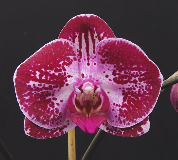 Pink flowers covered in heavy dark raspberry spots! Single spikes often with one extra branch.