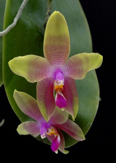 We are selling some of our "select" Phal. Guadalupe Pineda's. This is a cross between Phal. amboinensis and Phal. bellina. This hybrid is very fragrant! All these plants are 6 years old and mature. Most all have multiple flower spikes that will keep blooming from the same spikes for multiple years. Never cut them off, unless they turn brown! This particular clone has a green to yellow background with pink to magenta barring. The lower petals are nicely contrasted with dark pink to magenta in color. The picture shown is the plant that you will be receiving.