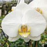 A beautiful white Phal. accented by a bright yellow lip. Great plant for a gift or for yourself! This hybrid produces large flowers that delight with their bright appearance and flat, open appearance. These flowers last for 3 to 5 months and the spikes can easily be trained down to cascade.