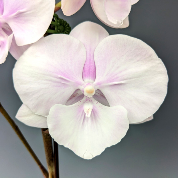 The light pink blush color form of this popular peloric beauty. The lip has taken the shape of a third petal, giving the appearance of a larger flower than normal.