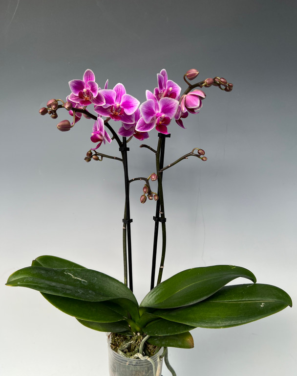 This easy-growing, intermediate-sized orchid will produce a flurry of flowers in full bloom. The plant with flower spikes stands about 16" tall.