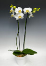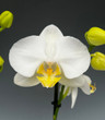 A classic, clean-cut white Phalaenopsis with a yellow lip. Tall spikes over 25 inches in length! Comes in a 6" white decorative container with matching saucer. An excellent choice for a classy and impressive gift plant that matches any decor.