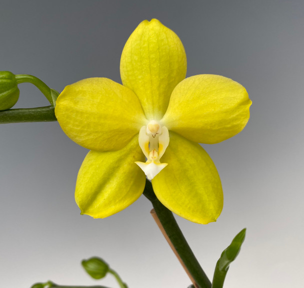 This hybrid is a very nice compact grower with shorter leaves and flower spikes that are 12-16" tall. The waxy 2" flowers are very long lasting (2-3 months plus) open with a green-yellow with a white lip that deepen in color after they have been open a few days. Often these types of Phalaneopsis will have some fragrance as well.
