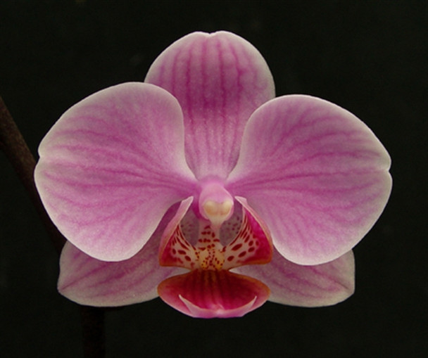 These are miniature Phalaenopsis with small pink flowers with dark pink to red lips.