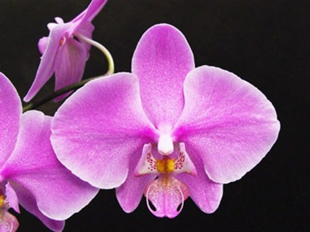These seedlings should produce large pink flowers with light pink to almost white lips, and some have inherited the attractive mottled foliage from the schilleriana parent.