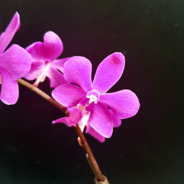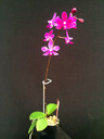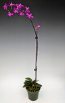 This fantastic compact hybrid is an Orchids Limited original from 2011! This orchid blooms with bright magenta flowers on spikes that continue to elongate throughout the flowering period. Easy to grow, and can flower twice per year. Interestingly, many flowers open purple, then fade to a light pink while retaining the purple column. The flower spikes will often continue to flower for 3 months, but have lasted up to 6 months on our best plants.