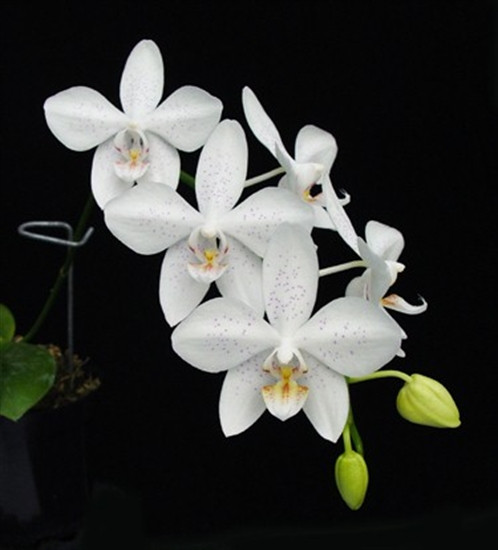 This is an exciting new primary hybrid between Phal. tetraspis and Phal. aphrodite (4N) . When these plants are mature expect multiple flower spikes with sprays of white star-shaped flowers dusted with fine purple spots on the petals.