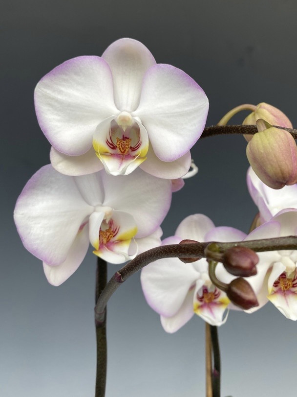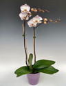 This is a beautiful white to light pink Phalaenopsis with a darker pink edge all around the flowers. Low maintenance, a lovely addition to your interior decor, or as a gift plant. Flowers will last 3+ months.