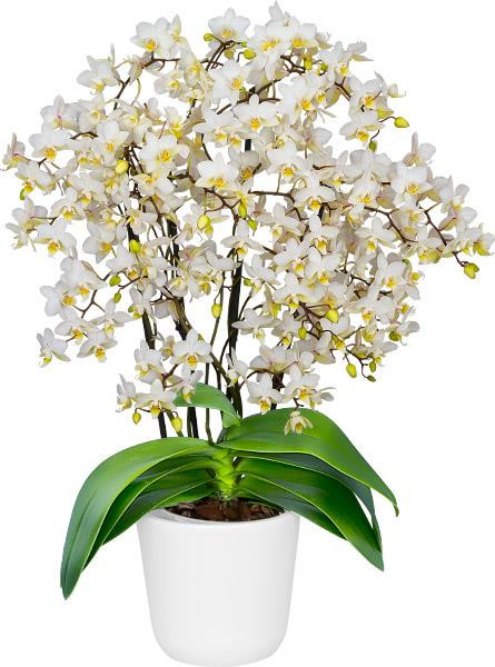 Healthy multifloral two-spike plants in 4.5" clear pots. Plant pictured is a specimen plant after a couple of years of growth.