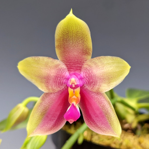 We are currently offering one, individually listed plant specimen plant that we have grown since 2010. This orchid has 5 leaves and 2 active spikes that are sporting beautiful 2" wide flowers. The hybrid is truly spectacular and will be a treat to watch bloom sequentially!