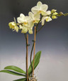 An attractive, large Phalaenopsis hybrid with chartreuse green-tinted flowers.