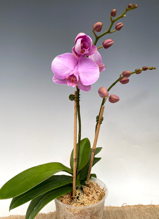 This is a lovely mid-sized double-stem soft pink with medium sized flowers. This line is produced for a nice table-top or desktop presentation as they do not need a lot of space to display.