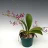 Native to the Philippines, this species blooms with large sprays of flowers on several branching spikes when grown to maturity. Do not remove the flower spikes when finished blooming, as they simply go dormant until the next year's flowering season. This species is closely related to Phal. mariae, although Phal. bastianii can be differentiated via its flatter flowers with sparse trichomes on the mid-lobe of the lip and a low, smoothed keel, seen blooming on upright spikes. The fourth photo shows a specimen plant as an example, with this being the darkest red plant in our collection.