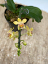 This is the yellow flower form of Phal. deliciosa, which is a miniature Phalaenopsis from Southeast Asia. The plant itself measure about 6.5" across when mature, with flowers that measure 1.5 centimeters across. Grow in small containers with sphagnum moss, tree fern or small bark mix. Also makes for a nice slab plant.