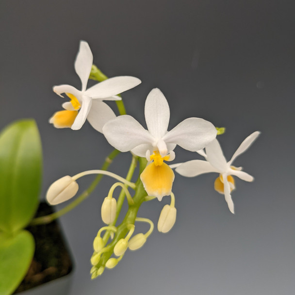 These cute little orchids put out lots of blooms and keep on blooming! Easy to care for species that produce white flowers with yellow lips.