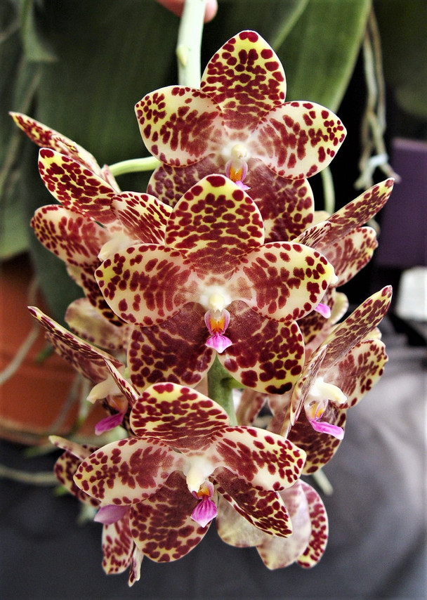 Often referred to as the “king of Phalaenopsis,” this remarkable species boasts the largest foliage of all Phalaenopsis. Native to Borneo, it produces long-lasting, waxy flowers that emit a distinctive fragrance often described as burnt matchsticks when in bloom.