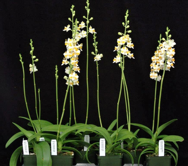This is a rare color form in nature and continued breeding has allowed these to be more readily available. Super easy to grow and flower. The flower spikes can bloom for months from the summer right up into November. The flower color is white and yellow. Care is as for any Phalaenopsis. The flowers are about 3/4 of an inch in size. This is a smaller plant that doesn't take up a lot of space.
