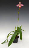 This beautiful pink hybrid has genetics consisting of 50% Phragmipedium besseae, 25% Phragmipedium fischeri, and 25% Phragmipedium longifolium lending to a 3.5" wide flower with rounded shape, slightly curling petals, and a delightful pink color. We consider this hybrid easy-to-grow thanks to the Phrag. longifolium genetics. Photos taken October 24, 2022.