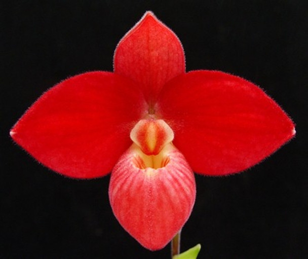 This is a remake of the primary hybrid between Phrag. besseae and Phrag. fischeri. This time however we used the tetraploid form of Phrag. besseae, and we used our awarded clone 'Rob's Choice'. The resulting hybrid is a triploid with thick flowers that are rounder in shape than the regular diploid Barbara LeAnn, and much darker in color.