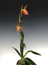 A long-leaved plant with tall stems and orange/yellow flowers. Phrag. longifolium is in the background, making this a fairly easy grower.