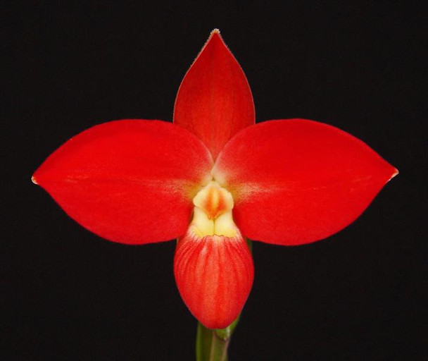 Finally, we have been able to produce enough of this nice hybrid that Robert Jan Quene named after himself while in our employ.The 'Peach Parfait' clone of Fritz Schomburg was a very large light peach-colored flower. Combined with the tetraploid besseae, the red-orange color will dominate and the flowers will look much like those pictured above.