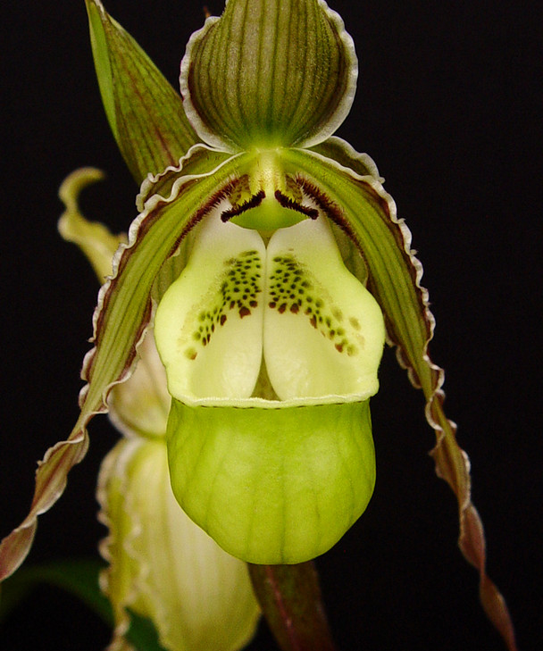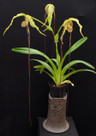 An interesting new long petaled hybrid created by Orchids Limited. These will be in colors of green, mahogany, white, and yellow and should have some darker spotting inside the white pouch. These are easy to grow, tolerating a wide range of temperatures and requiring low to medium light. Water as the potting mix approaches dryness.