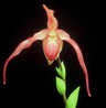 A long-petaled red Phrag hybrid. Parents used are excellent as besseae 'Prince of Orange' is a 10 cm flower and popowii 'Hong Yantse' AM/AOS has very dark petals.