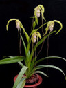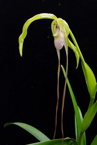 This species, now correctly known as Phrag. warszewiczianum, is famous for its long, green petals and light-colored pouch. It is native to Colombia, Peru and Ecuador. This species is more heat tolerant than other long petaled Phrags.