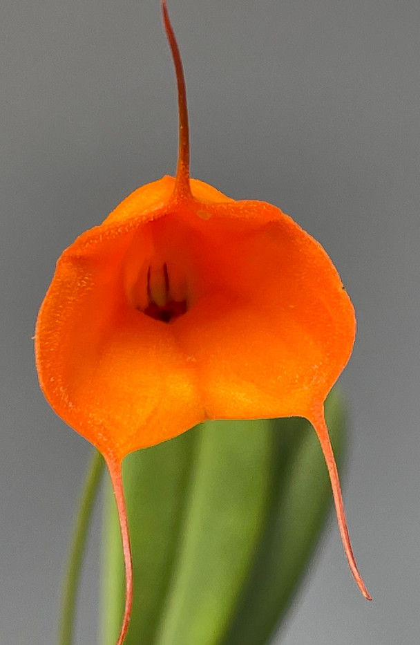 Select divisions of a beautiful, compact Masdevallia hybrid called Jelly Belly with the clonal name 'Belly Dancer' that has intense orange tubular flowers. Small compact plants about 6 inches tall. Excellent select plant from our breeding stock that is easy to grow and can flower twice per year.