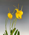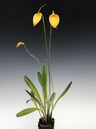 The super rare large pure yellow form of the species. Likes cool temps, bright light and wants to be grown in New Zealand sphagnum moss. Feed only once every 3 weeks to once a month if planted in moss. Bright yellow flowers emerge in the spring from the base of the slender leaves. We offer divisons of one of our stud plants that was collected in Colombia probably in the mid to late 1960's. Please note: The color in the video is washed out and the flowers really do look like the photos. These grow best in New Zealand sphagnum moss and want to be watered as the moss approaches dryness. Fertilize about once per month or every third watering.