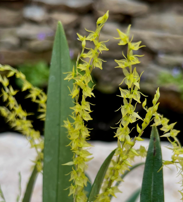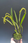 A compact, low-light, cool-growing species found in montane forest in Columbia and Ecuador at elevations from 2700 to 3200 meters. The inflorescence, which arises from the leaf bears a pendant cluster of gorgeous, strikingly yellow flowers.