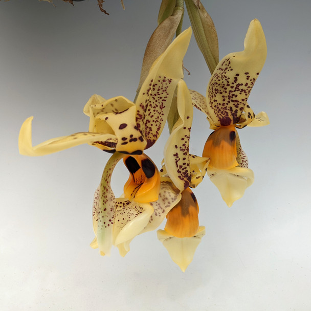Originally registered in 1922, this is one of the oldest recorded Stanhopea hybrids! Blooms with intermediate size, a fantastic vanilla fragrance, and a delightful spots throughout the petals.