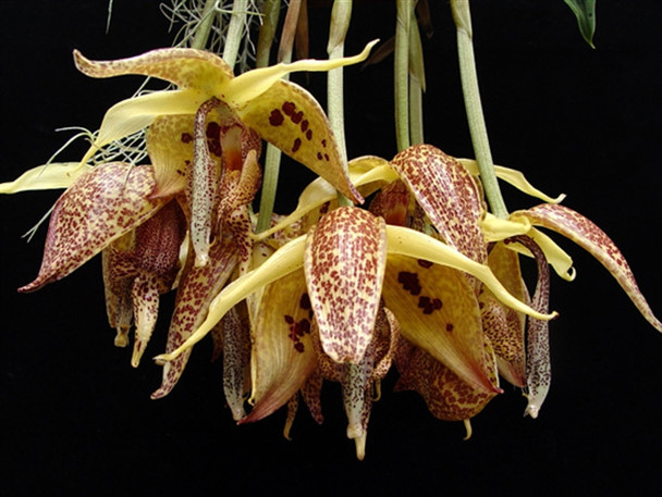 A small-sized cool to warm growing epiphyte from Columbia and Ecuador. Closely related to the genus Stanhopea, yet differs in leaf structure and flower lip.