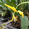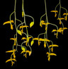Native to Colombia, Gongora gratulabunda thrives in semi-shade with moist, intermediate to warm conditions. It produces long, pendulous, and fragrant flowers. This is the yellow form of the flower, as opposed to the red-spotted standard flower form.