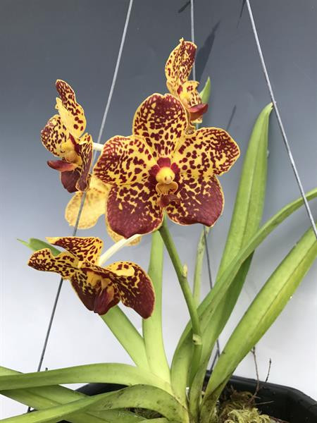 A mid-sized Vandaceous hybrid that is capable of flowering more than once per year as are many Ascocenda hybrids. This cross holds its flowers quite well, and seems to out flower most other similar Vanda hybrids by two weeks or more.