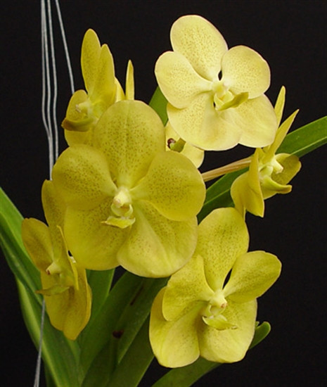 A colorful yellow Vanda with 3" wide flowers. Heavy substance flowers that ship well even while in bloom.