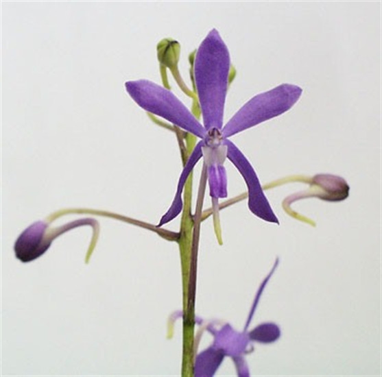 Once very common in the trade, we are offering divisions from one of our collection plants. Darwinara Charm 'Blue Star' is often used as a breeding parent for many interesting Neofinetia offspring. This is a proven plant that is very fertile, and is still one of the best Neofinetia hybrids to date that grows very well in pots or baskets (it has an abundant root growth habit), and can easily become a large specimen that blooms multiple times a year. A true classic and must have for Neo hybrid fans.