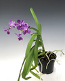 If you do not live in a high humidity environment (like Southern Florida), you can still grow Vandas! We simply put them in plastic pots with a bark mix like a Cattleya, and they do just fine. You will experience lots of aerial roots in the long run, however. Our other technique of growing these is in net baskets lined with Oregon green moss and filled with charcoal or coco husk.