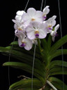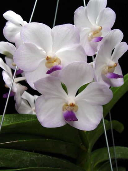 Nice flat flowers that are white to light blue in color with contrasting blue to purple lips.