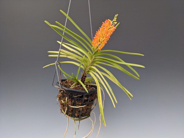 An uncommon Ascocentrum species found growing in the shaded forests of Bali, Sulawesi, and the Philippines. This species grows well at intermediate light levels and will develop deeper brown and burgundy speckling on the leaves in brighter light.