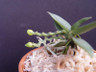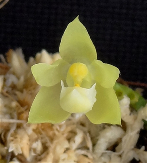 This is a miniature sarcochilus relative. Very small monopodial growth habit. Small yellow/green flowers open in succession over 1 to 2 months. Very fragrant, smells like a cup cake. Available in pots or slabs.