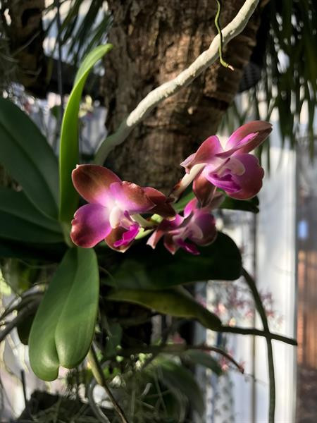 A warm growing species native to South East Asia. This variety has a bronze/orange/red color with white in the center of the column. It also has a purple lip, making for good color contrast. Best grown in humid conditions on a mount, baskets with moss/bark/charcoal mix or in plastic and pure charcoal.