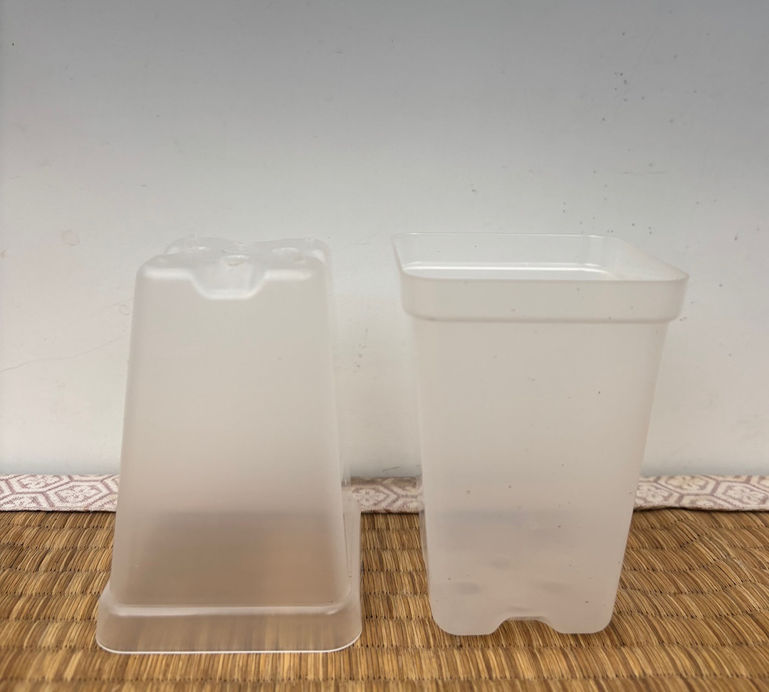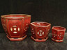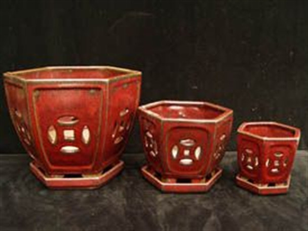 These pots come in three sizes, (we are temparily sold out of the 6")made to fit 4", 6" and 8" plastic growing pots. Each pot comes with a glazed saucer.