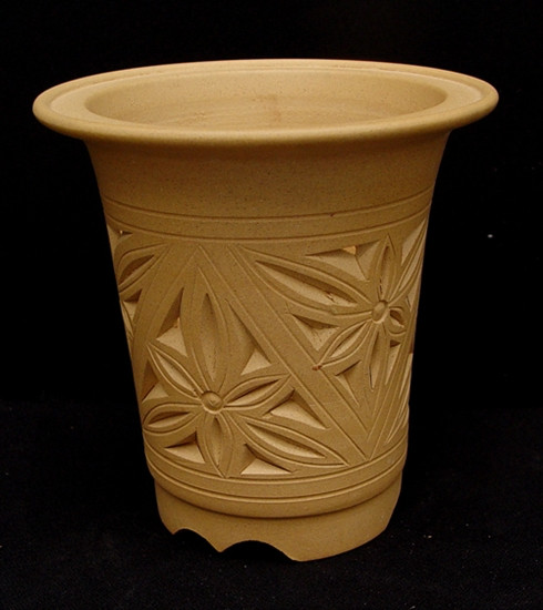 These are hand thrown stoneware clay pots, suitable for growing orchids. This pot is made out of yellow clay, and is 5" tall with a 5" wide rim.
